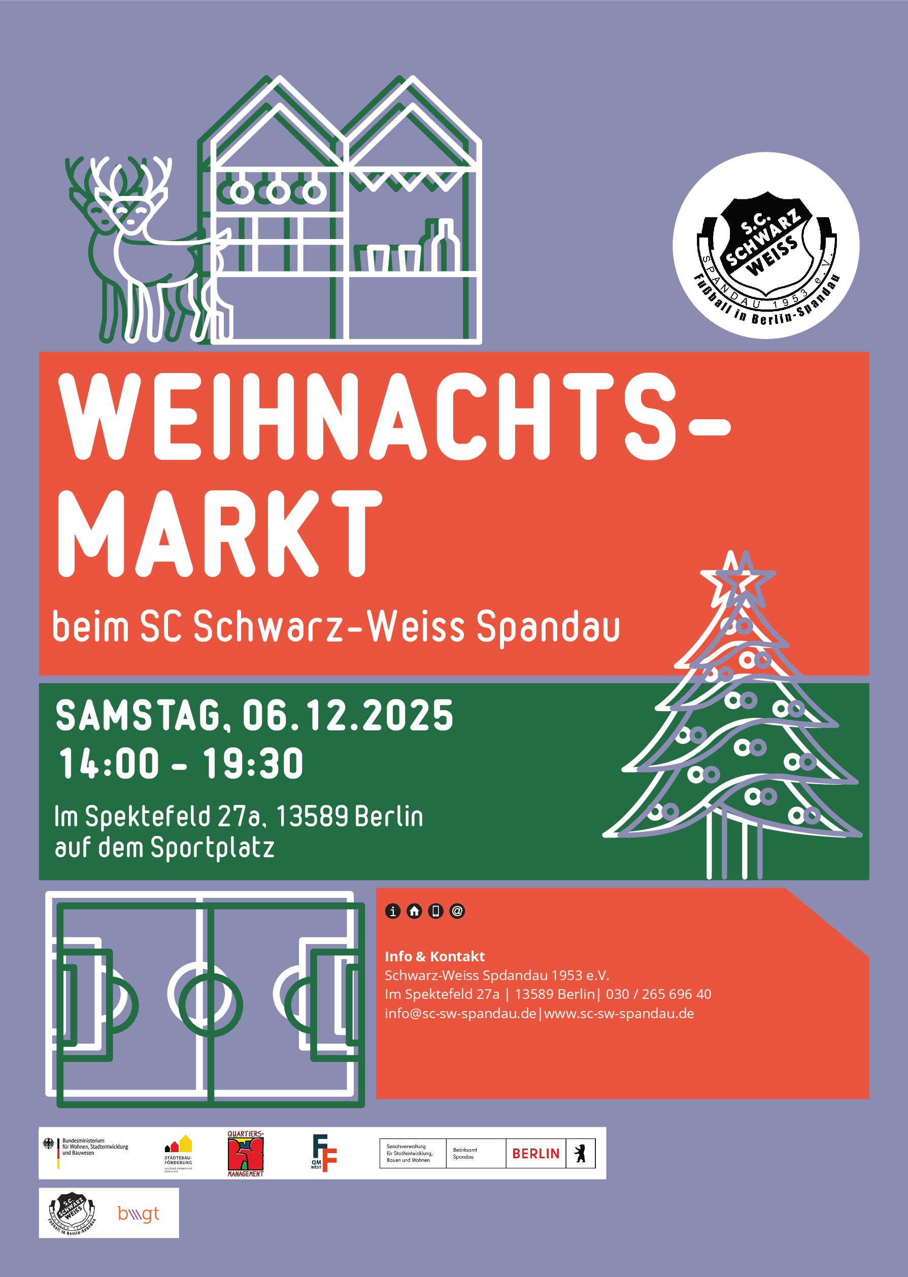 Der SC Schwarz-Weiss Spandau und die Sport-Sozialarbeit laden zum Weihnachtsmarkt ein: am Samstag, den 06.12.2025 von 14 – 19:30 Uhr.