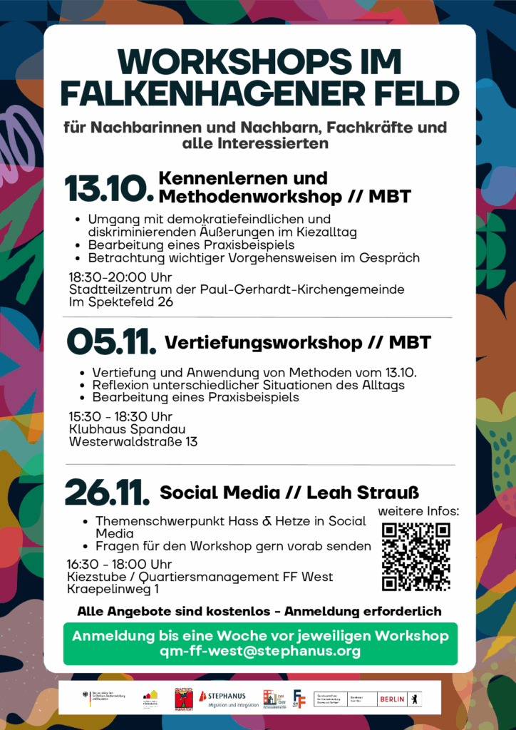 Die Workshops werden in Zusammenarbeit mit dem QM Falkenhagener Feld Ost organisiert.